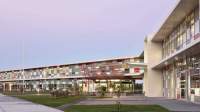 was the aim of the Ministry of Education to have the school be extremely earthquake and tsunami proof, given the volatile environmental conditions. This beach-side school consists of three, two-storey, modern, open-plan learning environments, a high-ceiling gymnasiusm and performing arts centre, with an elevated walkway.